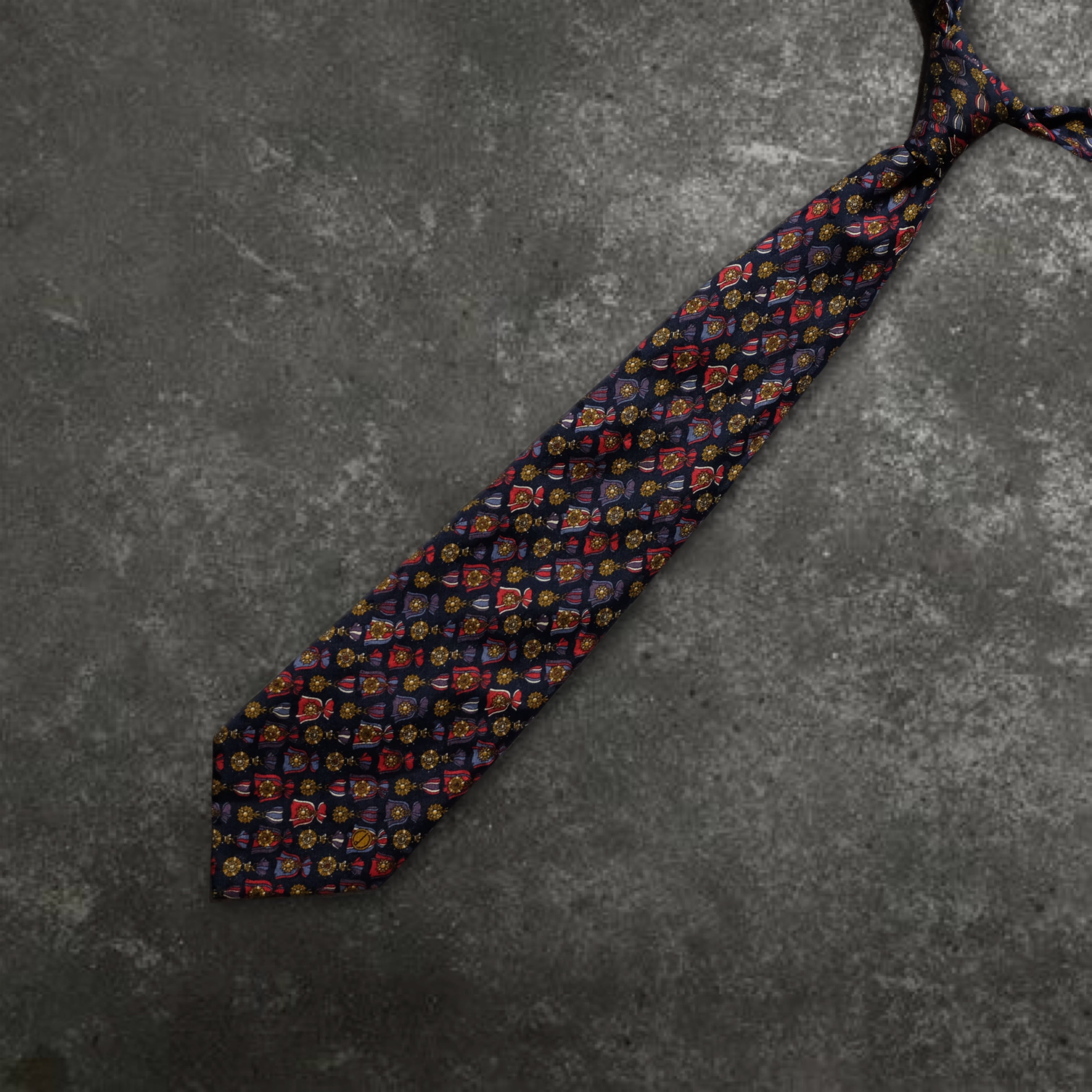 vintage used clothing dunhill patterned tie navy silk ヴィンテージ ユーズド 古着 ダンヒル 総柄 ネクタイ 紺 絹 デザイン モード
