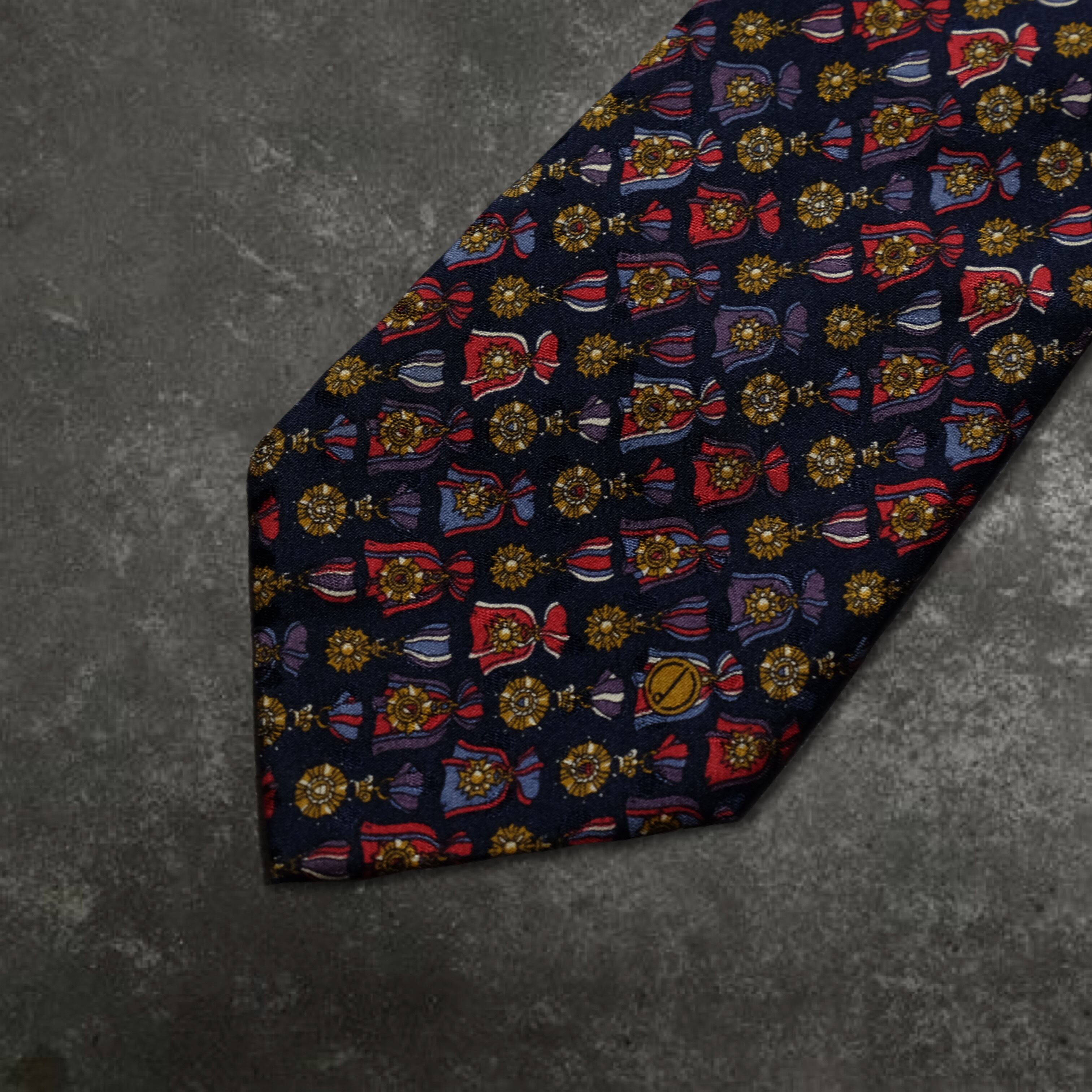 vintage used clothing dunhill patterned tie navy silk (smop000712)