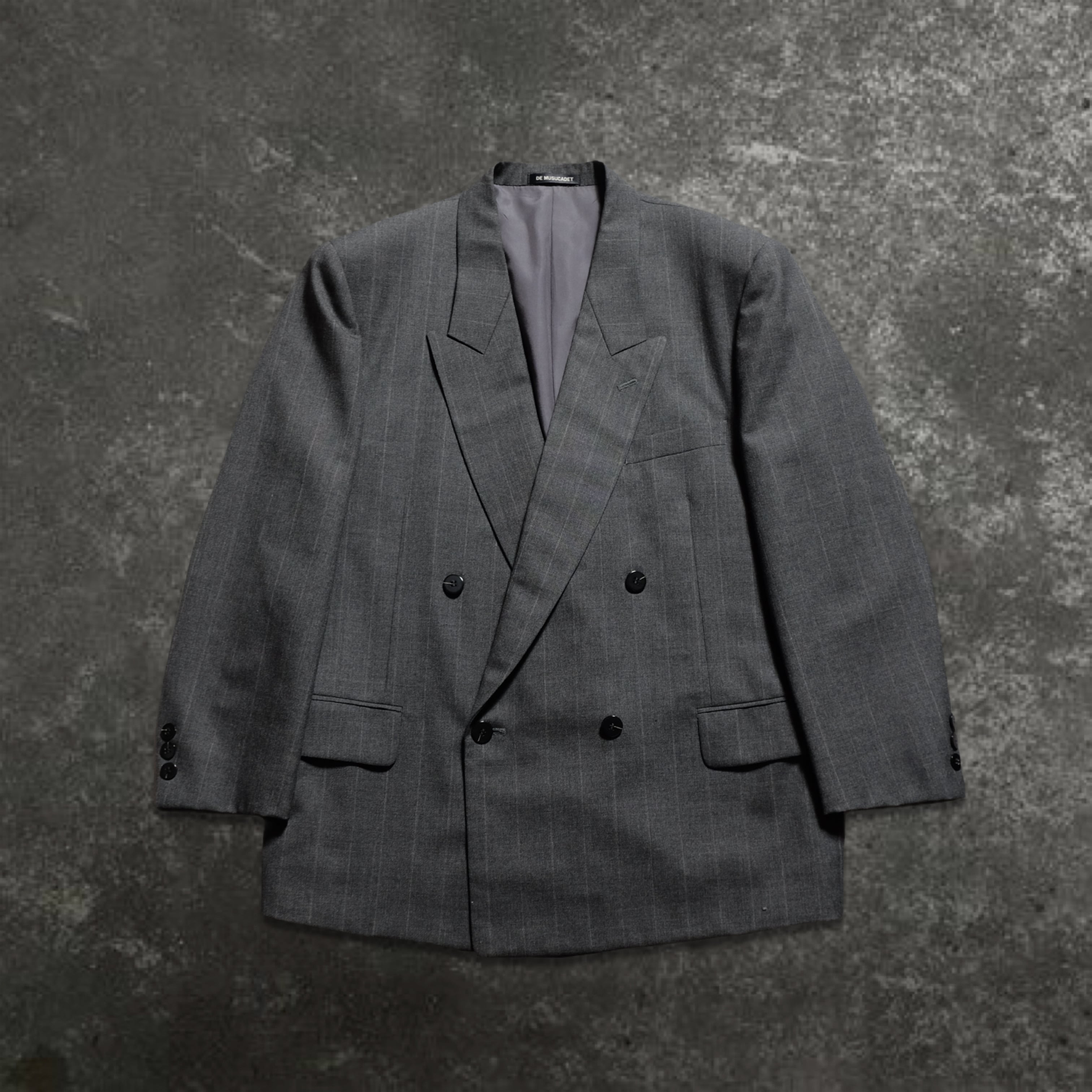 vintage used clothing double setup gray stripe wool ヴィンテージ ユーズド 古着 ダブル セットアップ 灰 ストライプ柄 デザイン モード