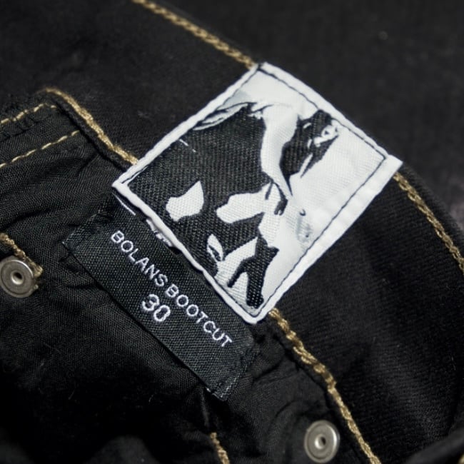 used clothing rick owens drkshdw coating wax flare denim pants bolans black mode design y2k grunge