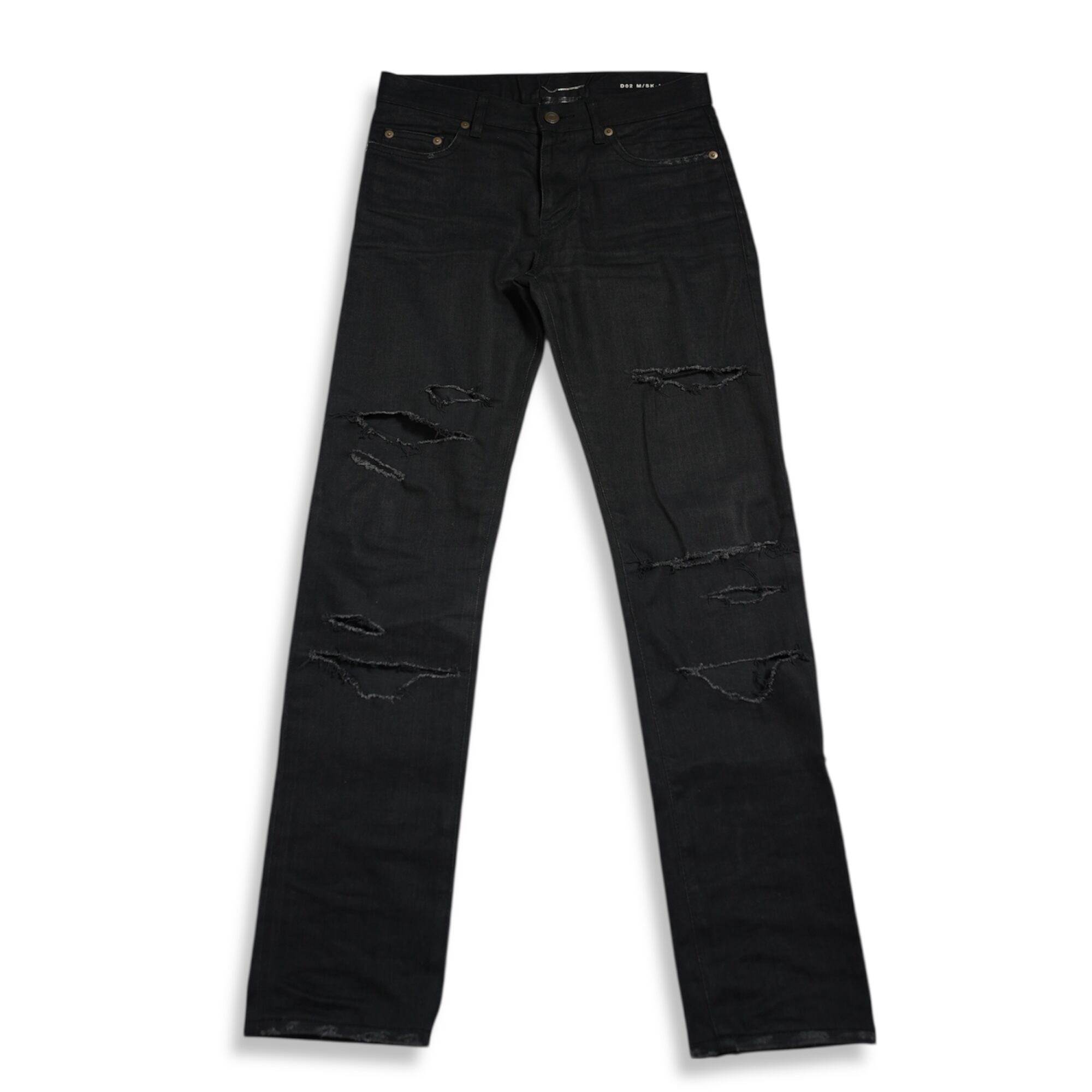 ヴィンテージ アーカイブ 古着 サンローラン エディ期 15年 グランジ ダメージ ブラック デニムパンツ