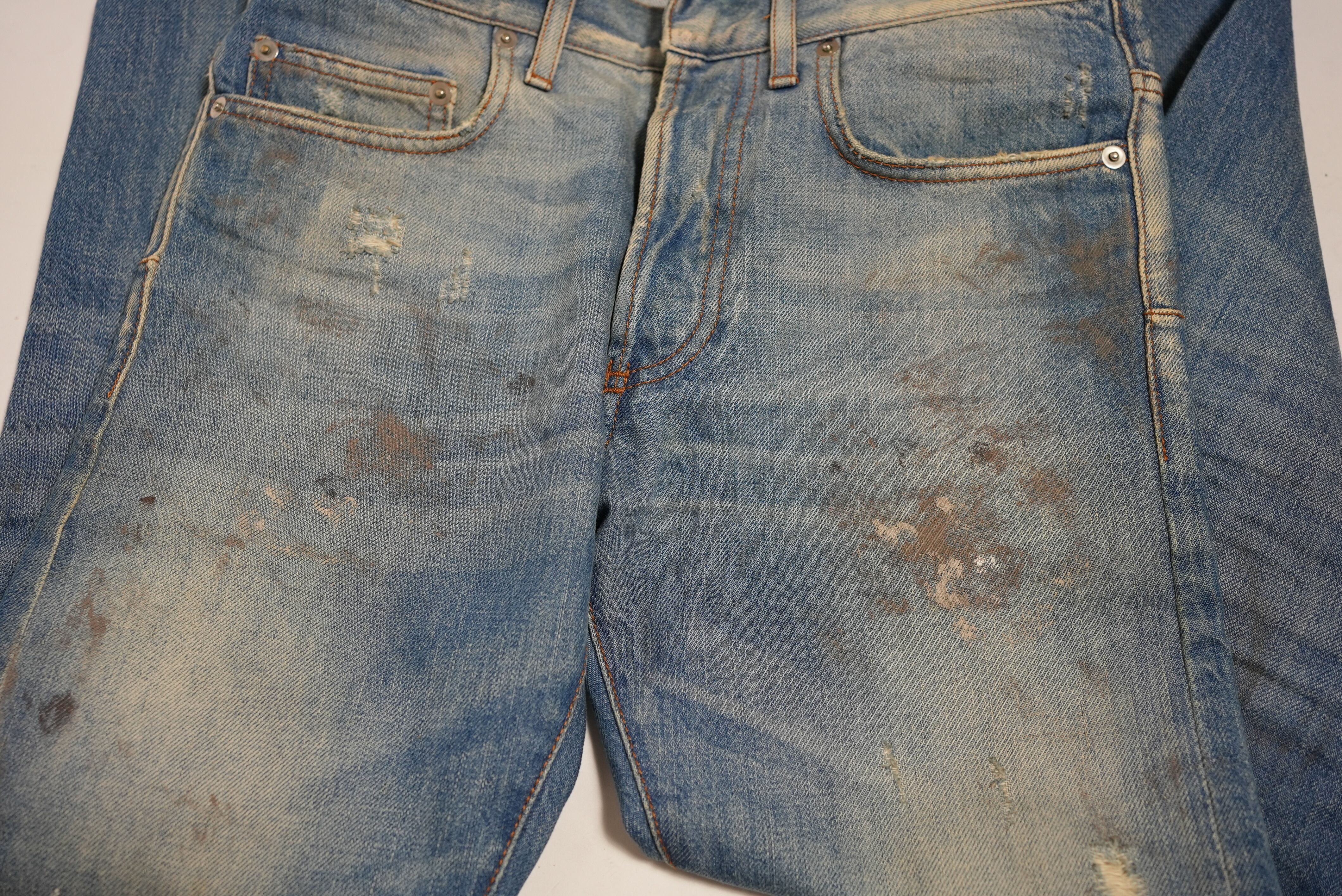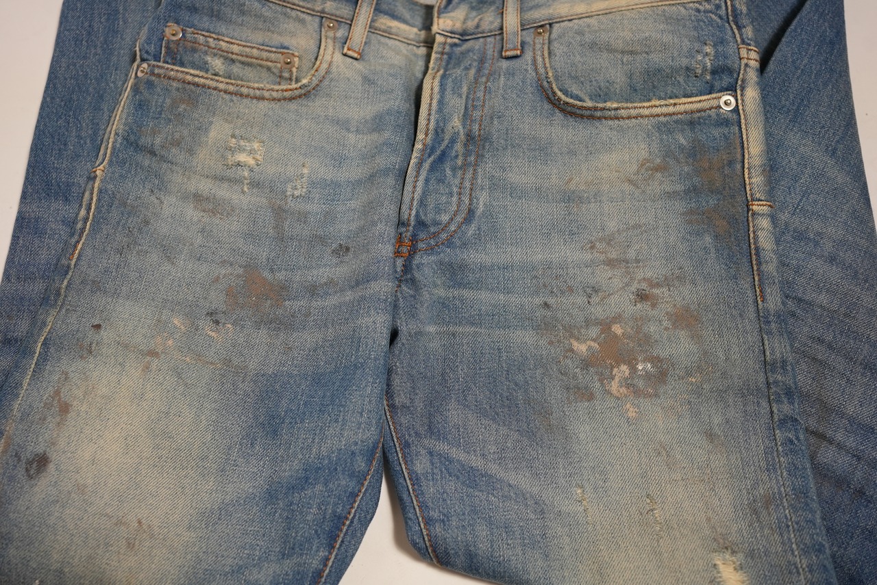 ヴィンテージ アーカイブ ディオールオム クリス期 11年 グランジ フェード ディストレスト ステイン デニム オイル加工 ダーティブルー加工デニム