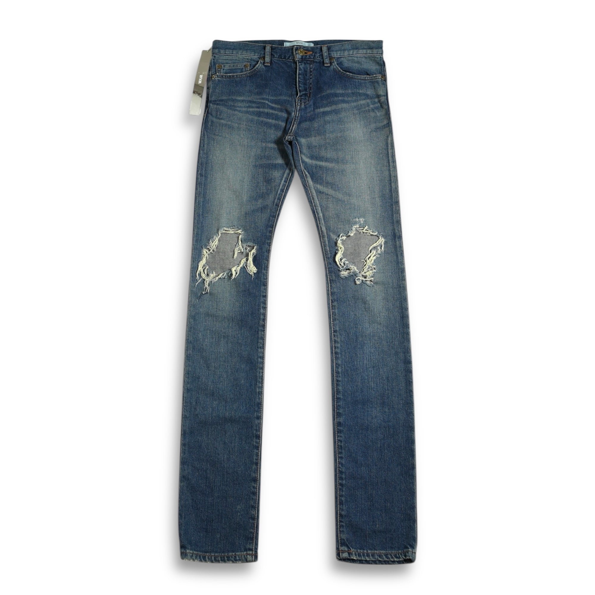 vintage archive used clothing damage skinny denim pants indigo mode design