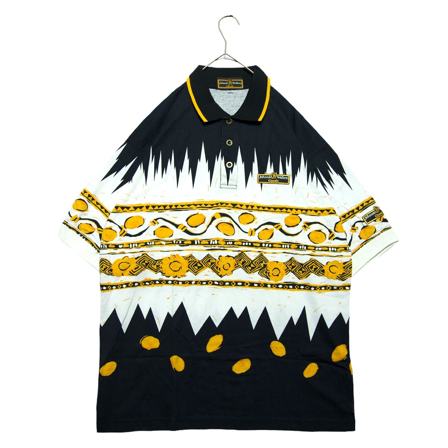 vintage used patterned polo shirts black white ヴィンテージ ユーズド 古着 柄 ポロシャツ 黒 白 デザイン モード
