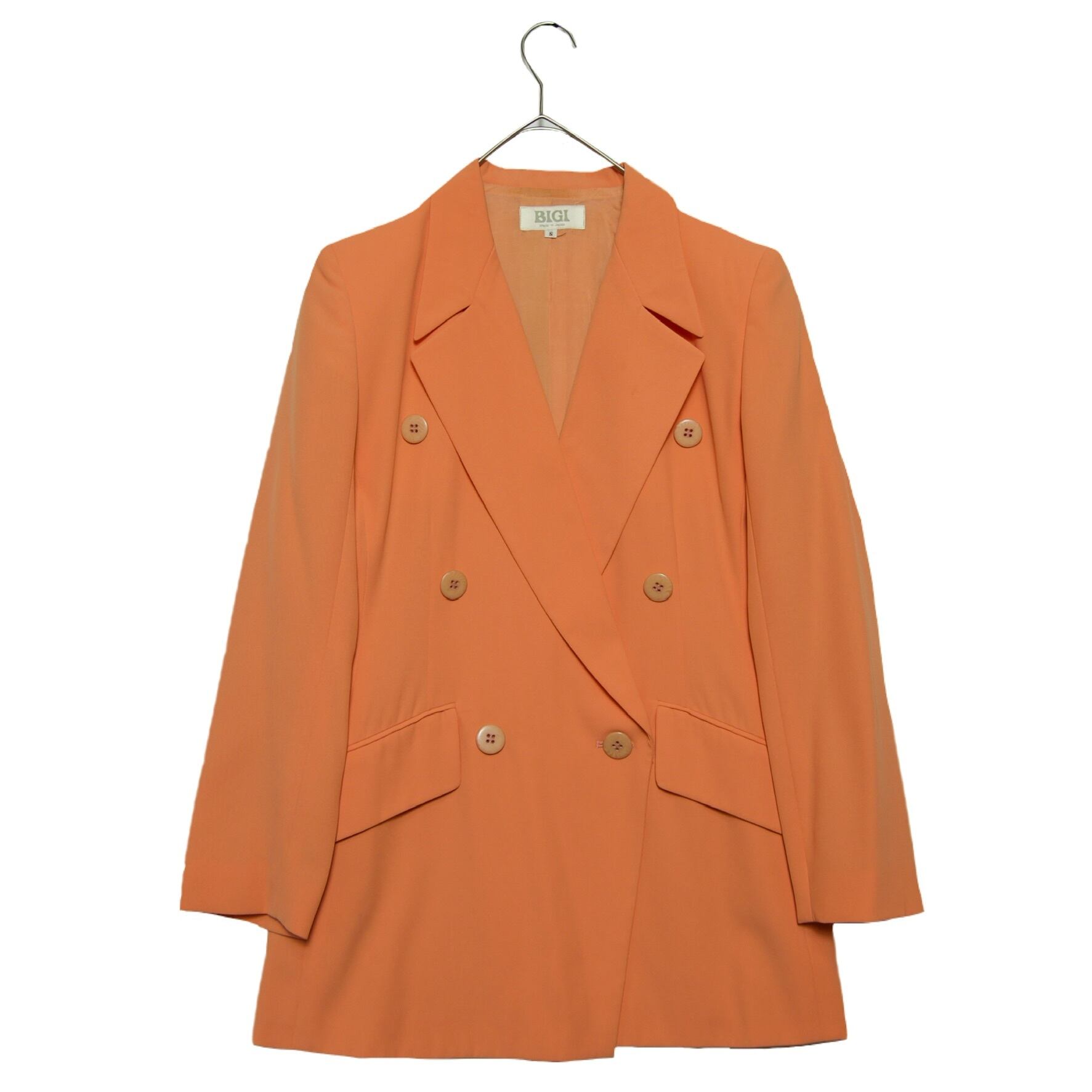 vintage used double jacket pale orange polyester ヴィンテージ ユーズド 古着 ダブル ジャケット ポリ ペール オレンジ デザイン モード
