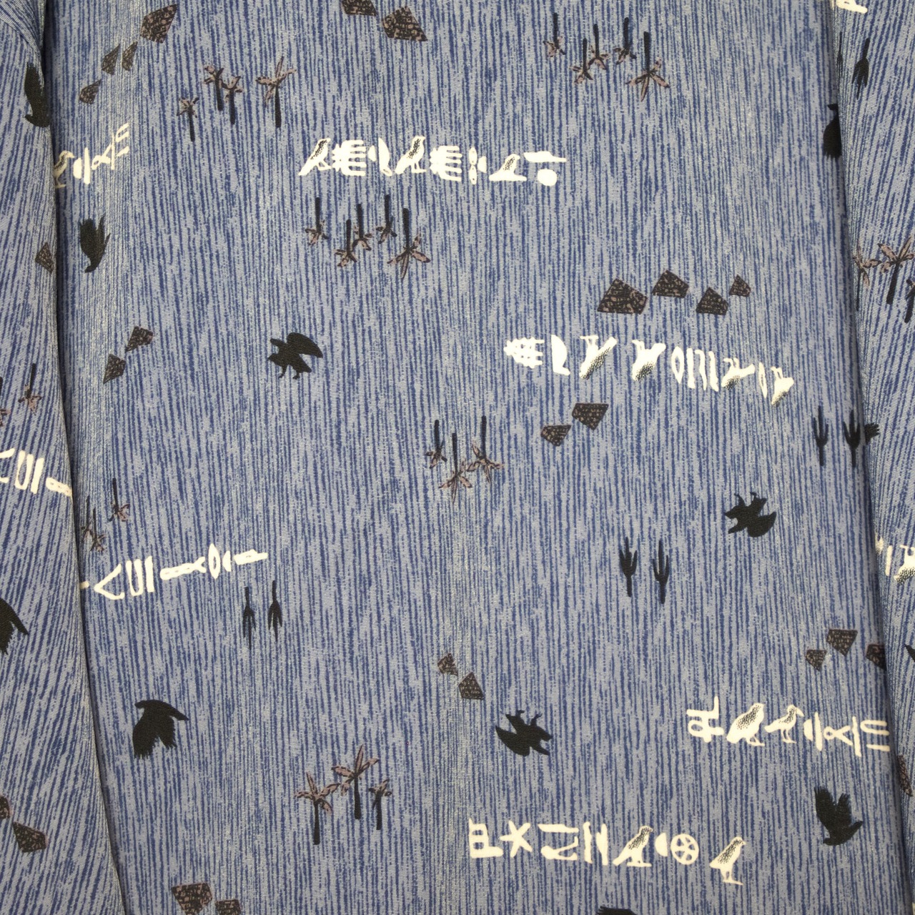 vintage used claudio valentino patterned design shirts blue polyester ヴィンテージ ユーズド 古着 クラウディオ ヴァレンティノ 総柄 シャツ デザイン モード 青 ブルー ポリ