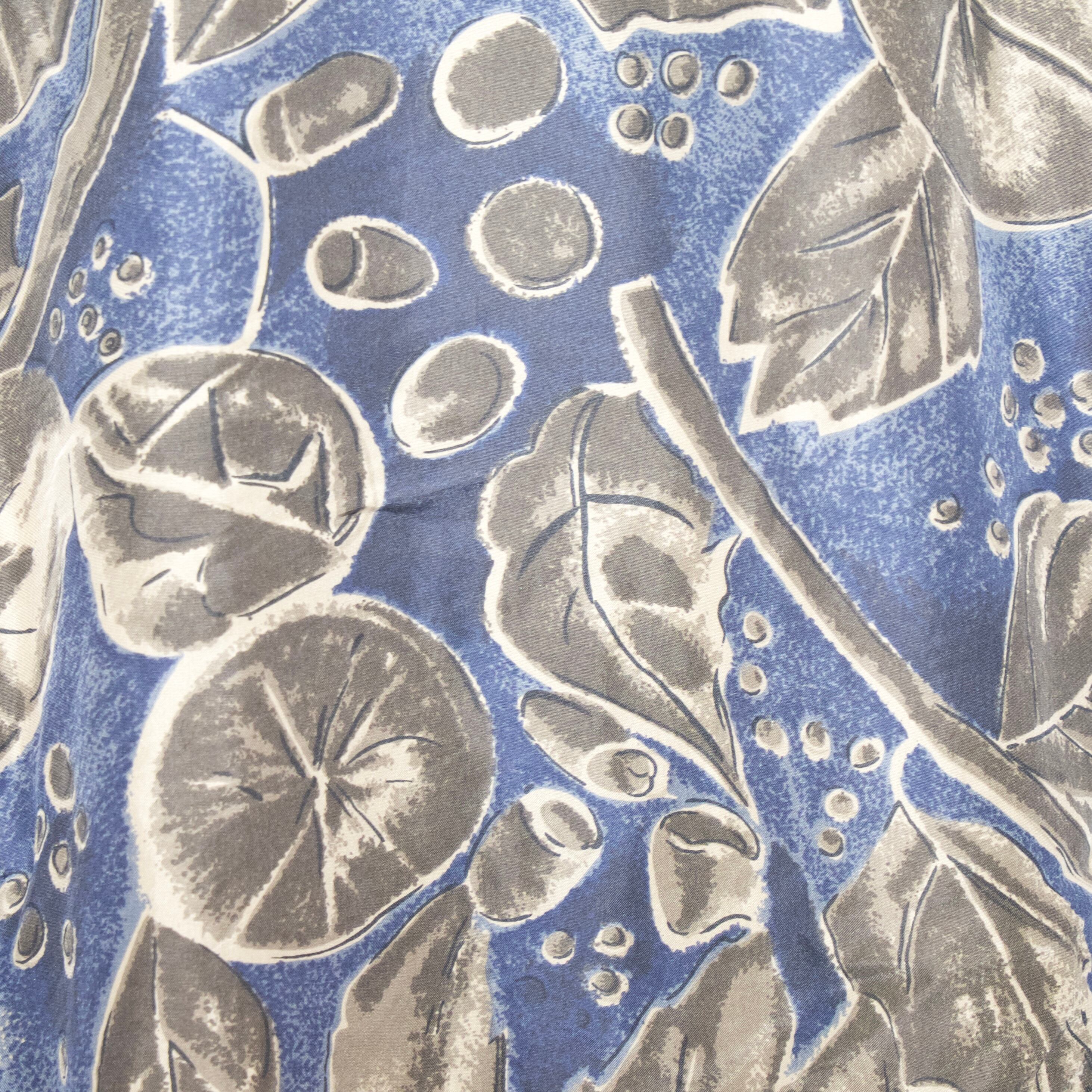 vintage used patterned aloha shirts silk botanical blue (smop000207)