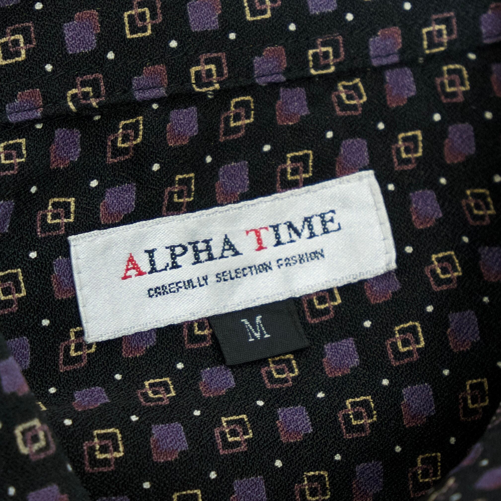vintage used clothing patterned shirts black polyester ヴィンテージ ユーズド 古着 総柄 シャツ黒 ブラック ポリ デザイン モード