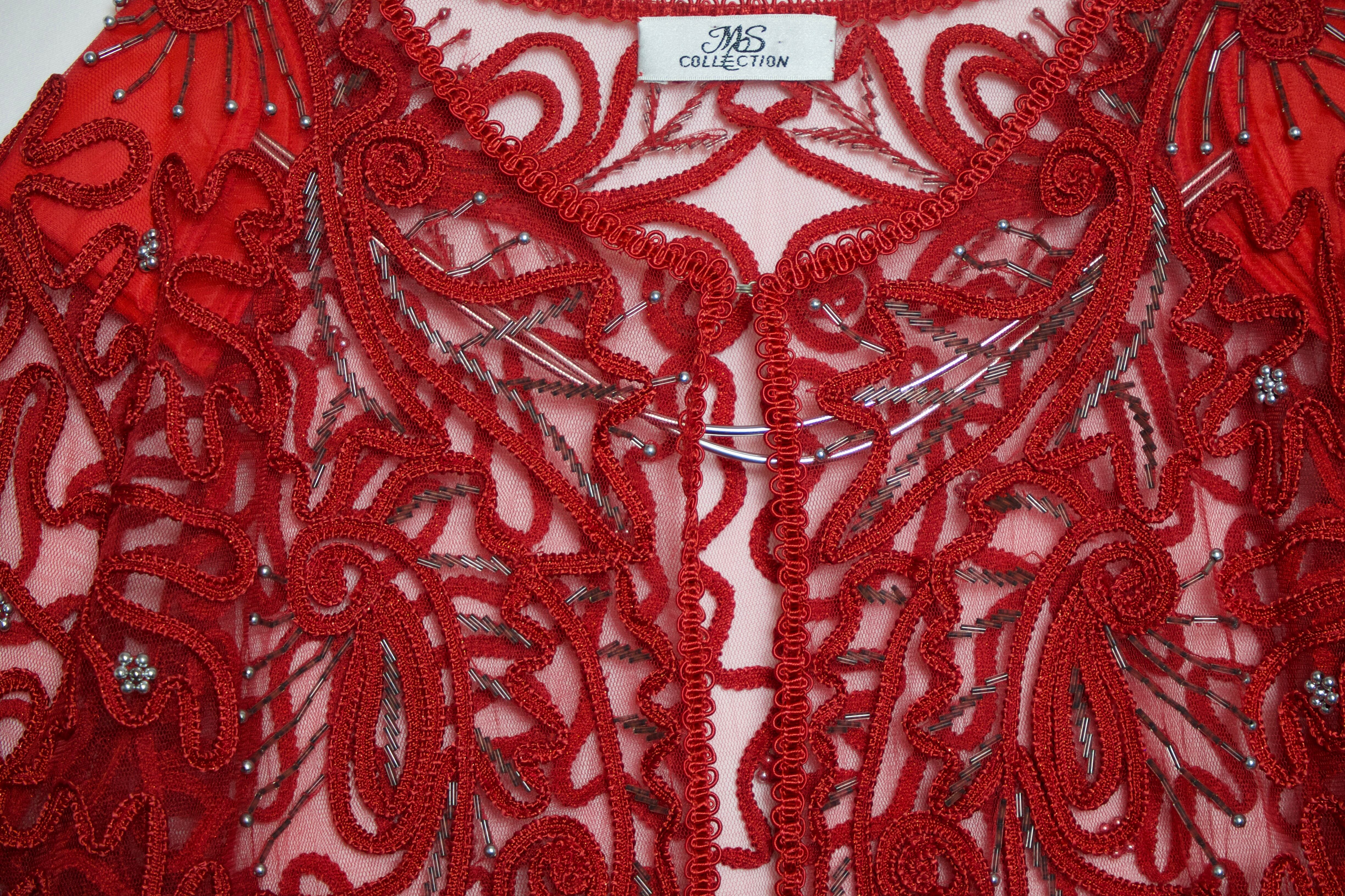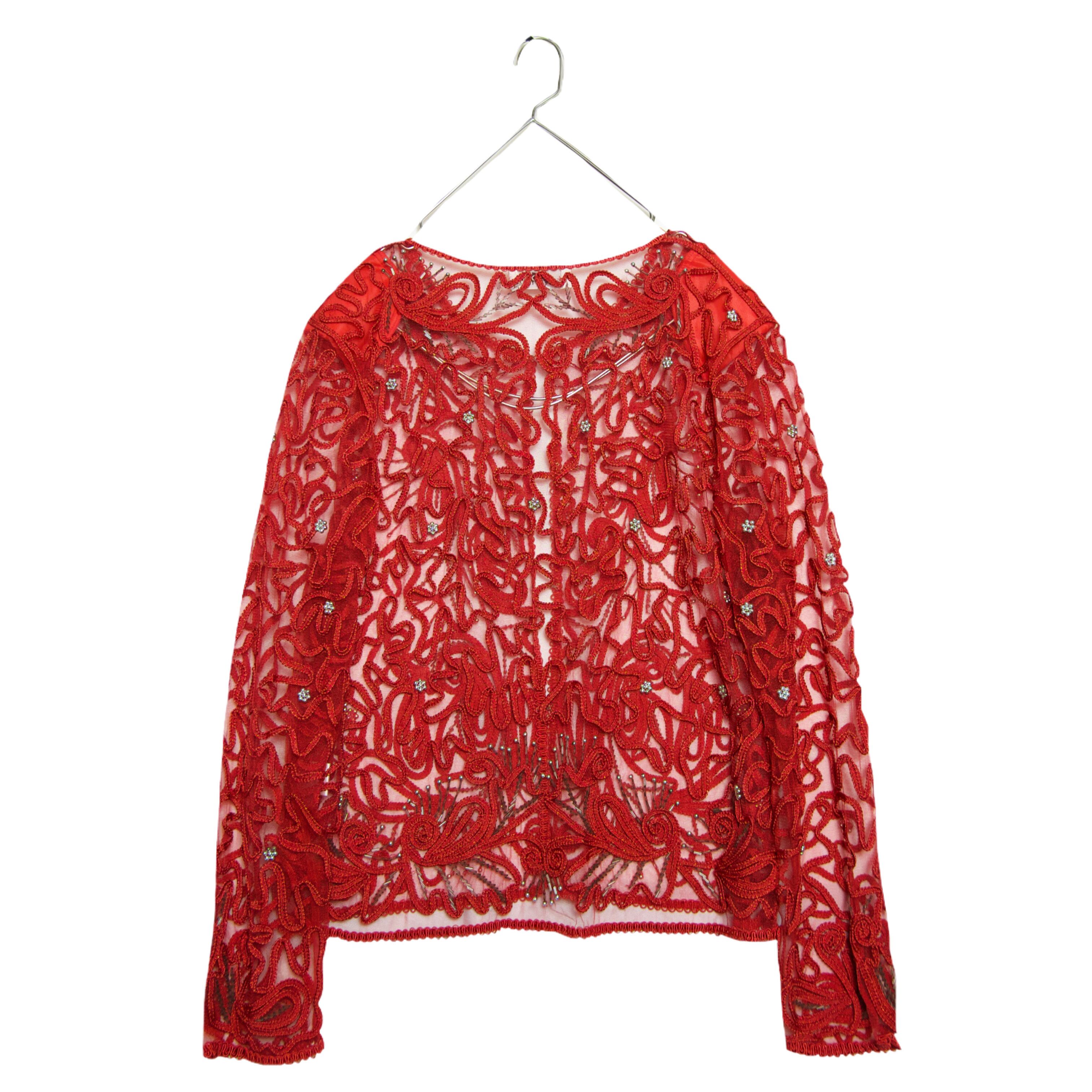 vintage used clothing patterned see-through jacket red (smop000347)