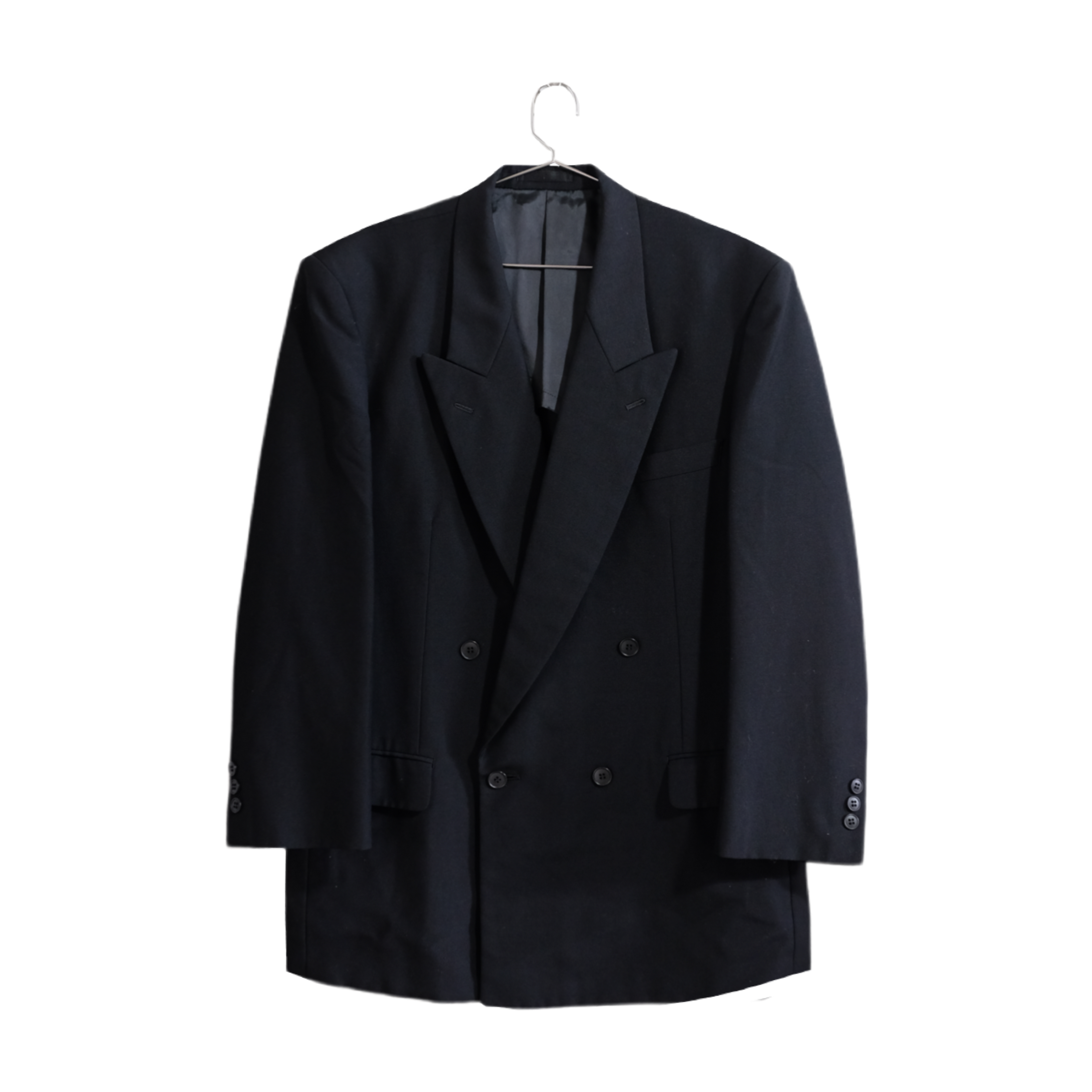 vintage used clothing double setup black wool ヴィンテージ ユーズド 古着 ダブル セットアップ 黒 ブラック ウール モード デザイン