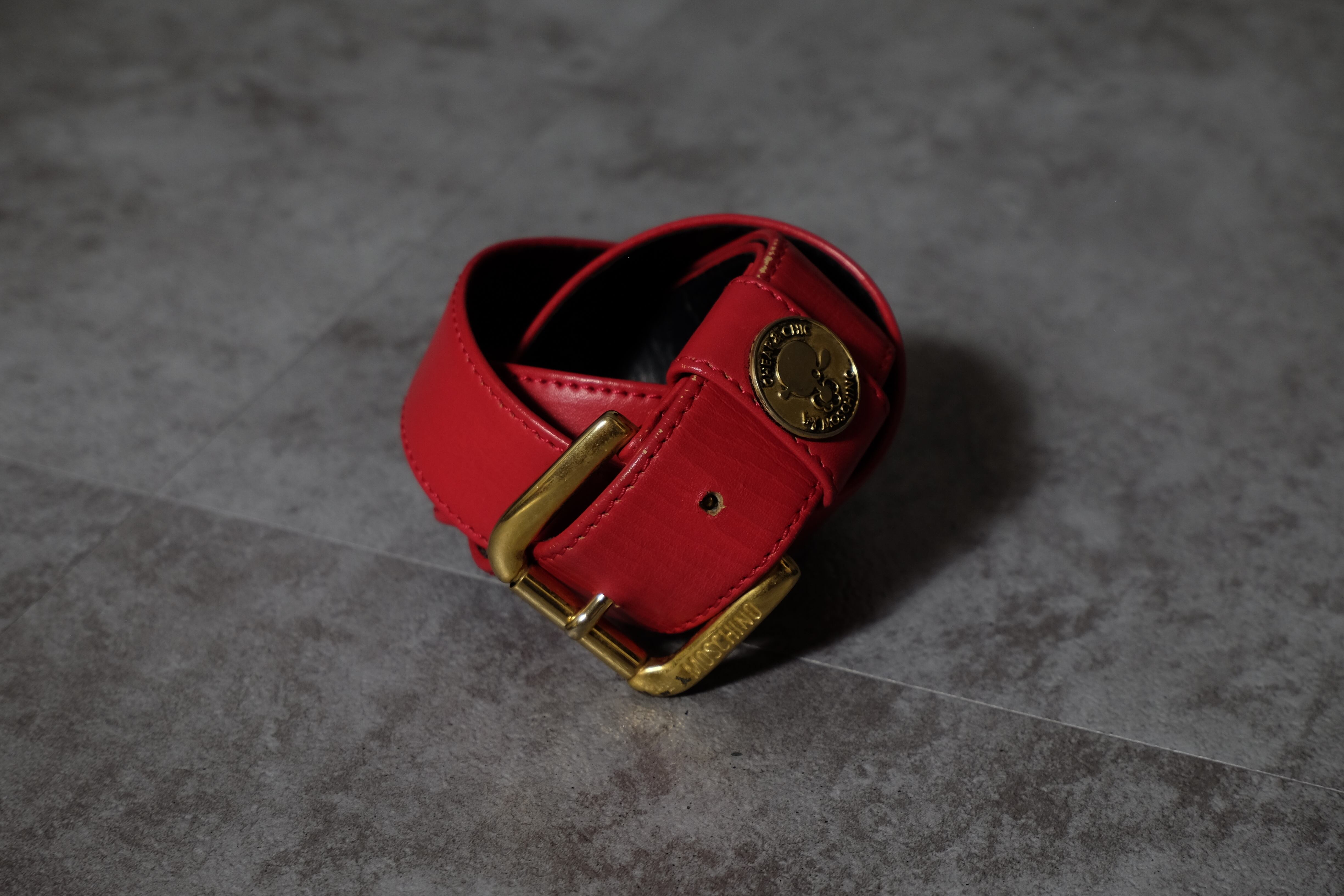 vintage used clothing moschino leather belt red ヴィンテージ ユーズド 古着 モスキーノ レザー ベルト 赤 モード デザイン