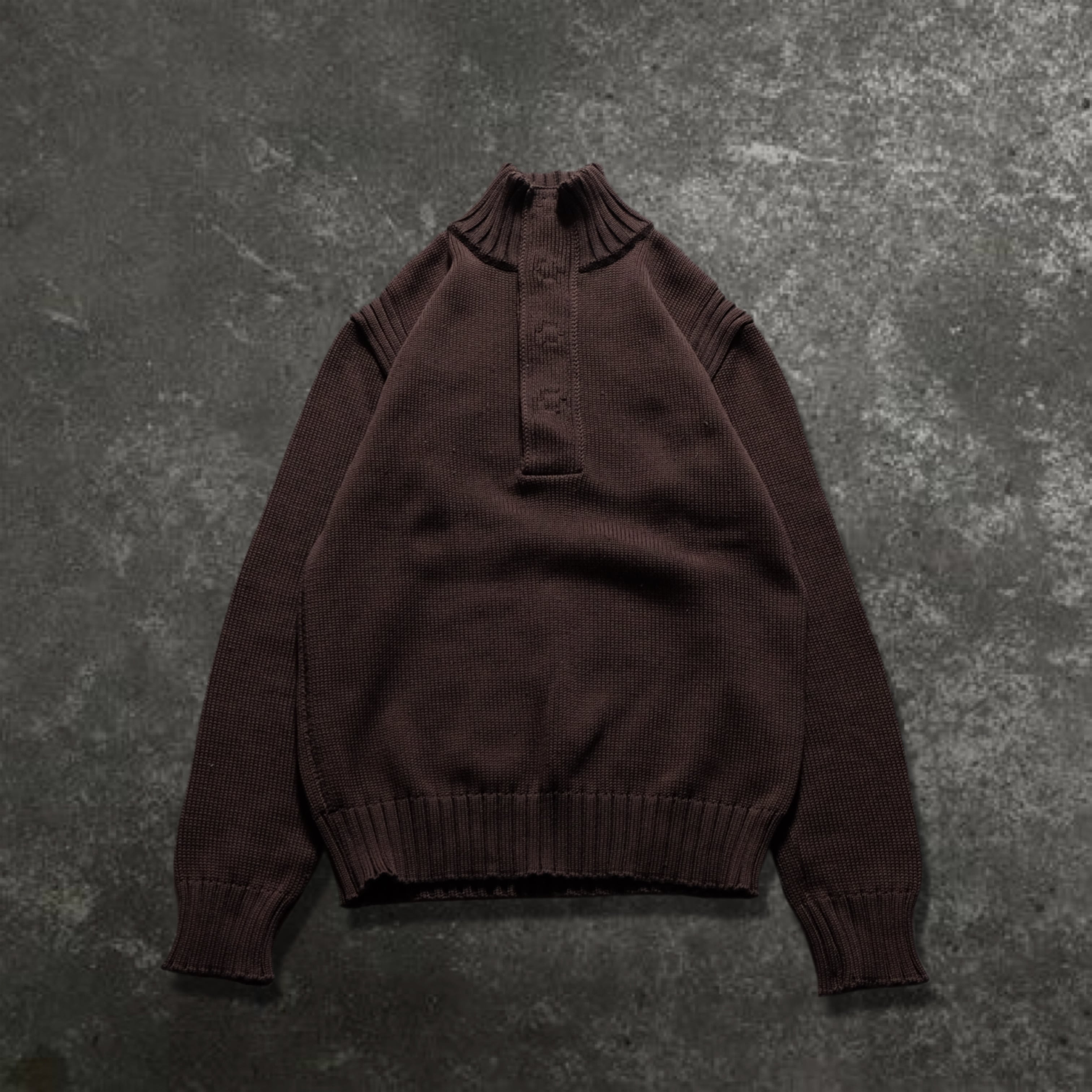 90s vintage used clothing dkny knit high-neck sweater brown gray ヴィンテージ ユーズド 古着 ダナキャラン ハイネック セーター モード デザイン